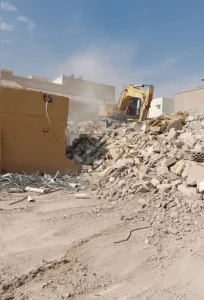 3. تنظيف الموقع بعد عميلة الهدم : بعد الهدم، نقوم بتنظيف الموقع بالكامل عن طريق ترحيل كل مخلفات الهدم إلى أماكن مخصصة من الجهات الرسمية ، مما يساهم في حماية البيئة.